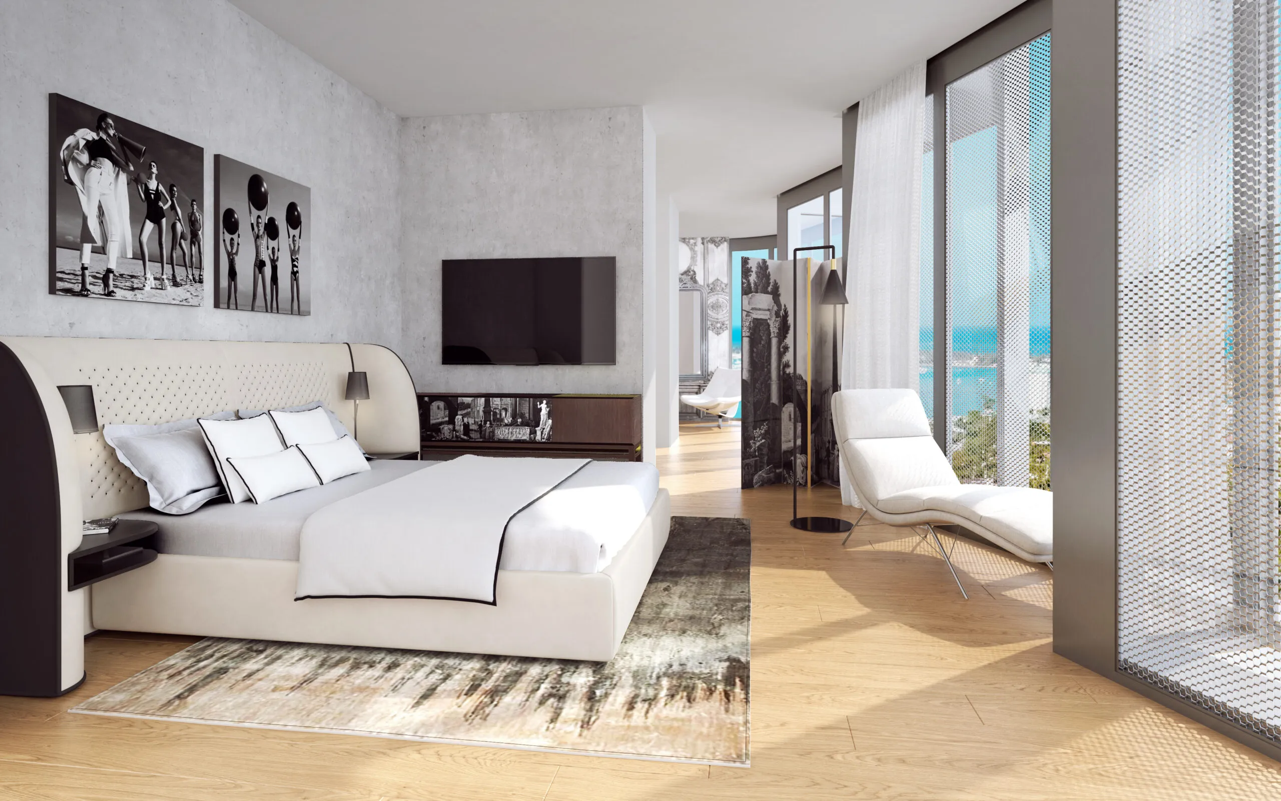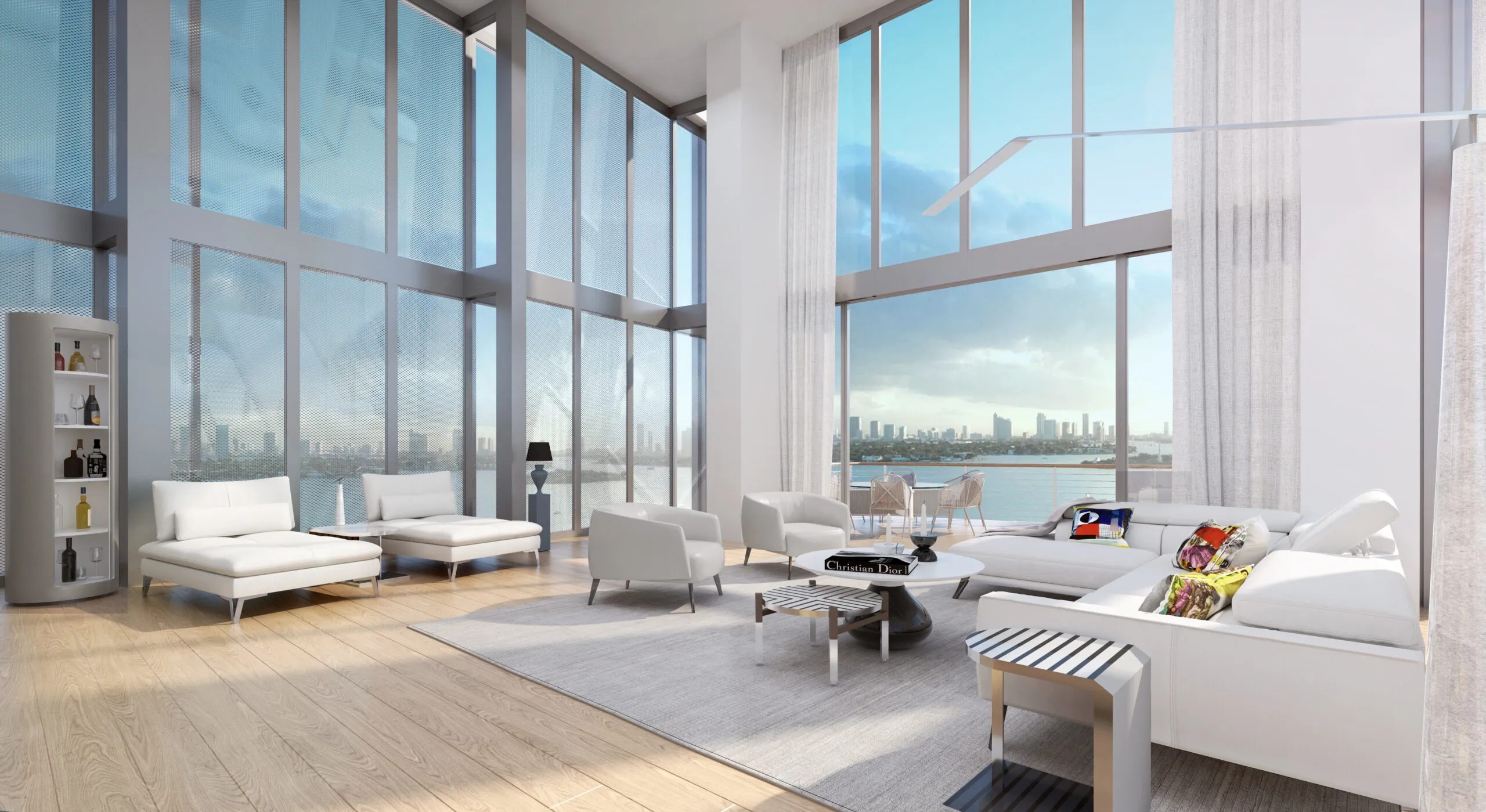 Interior designer Rita Chraibi reveals another project by designing the Penthouse at Monda Terrace. The exceptional private rooftop, complete with a pool, sun deck, hot tub, summer kitchen and bar, and a dedicated elevator, is in a league of its own. Breathtaking Downtown skyline views and Ocean breezes from 4,383SF of exterior space exemplify the Miami Lifestyle. Rita's design vision for this Penthouse boldly combines the richness of colors and elegance of motifs. She designed the Penthouse at Monad, highlighting Her "French touch," which is appreciated in places where an "art de vivre" is of the utmost importance. This residence has been designed in a very sober tone, material, and textures to allow uniformity of the volumes.